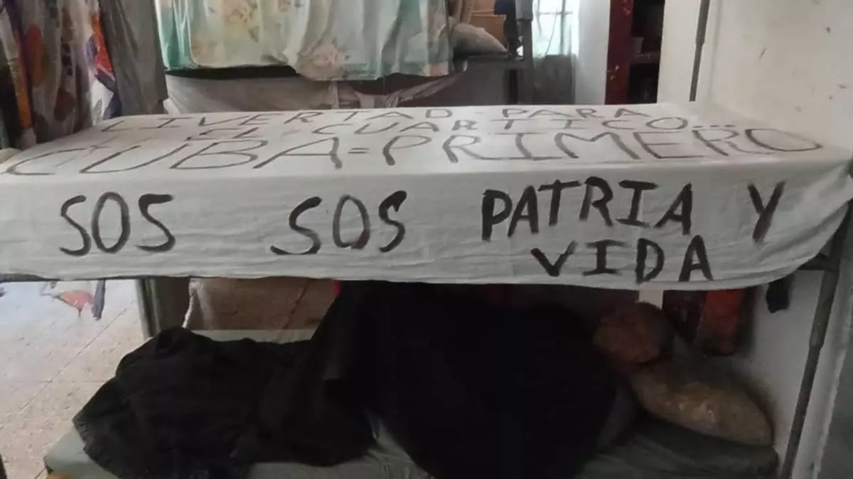 During the early morning hours, videos and audio recordings circulated on social media in which shouts of “Freedom,” “Homeland and Life,” and slogans against President Miguel Diaz-Canel can be heard. In some images taken from inside the prison, several inmates display sheets bearing protest messages hung in common areas.
