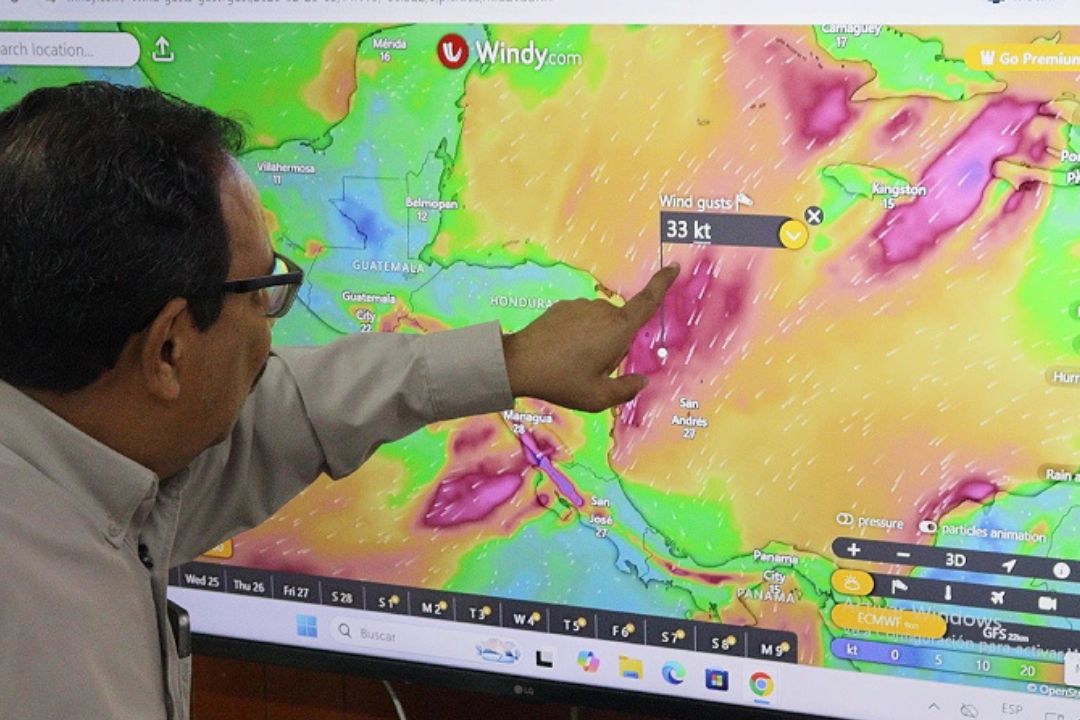 Baca destacó que habrá vientos de moderados a fuertes, especialmente hacia la noche. Tendrán una velocidad de desplazamiento de 30 a 35 kilómetros por hora en la Región del Caribe Norte y Caribe Sur y al sur del Pacífico, por lo que llamó a las embarcaciones menores a tener precaución a la hora de navegar durante la semana.