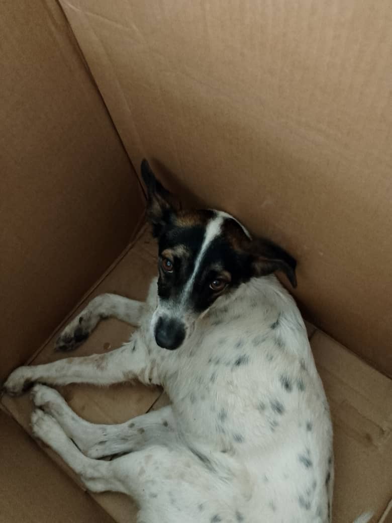 We quickly went back with a cardboard box, and she called someone she knew from the neighborhood, a veterinary student. We also gave the dog a little water, which she drank desperately. She was no longer crying out. Between the student and another young man, they placed her inside the box. Then the student’s mother came in a car and took us to Felicia’s apartment, my neighbor, who would care for her while we looked for alternatives to help her.