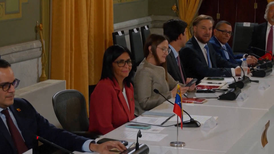 Venezuela’s interim President Delcy Rodríguez announced Venezuela will reform its mining laws in a move that will give the U.S. greater access to Venezuela’s natural resources. Rodríguez made the announcement next to U.S. Interior Secretary Doug Burgum, who was in Caracas along with executives from more than two dozen U.S. mining companies. Axios reports Trump officials have already brokered a massive U.S.-Venezuela gold deal. This all comes two months after the U.S. attacked Venezuela and abducted Venezuelan President Nicolás Maduro and his wife Cilia Flores, who are being held in a New York jail.