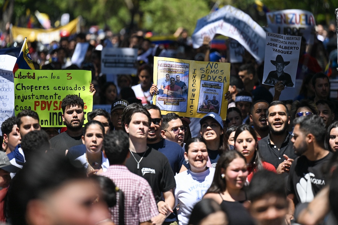 Bajo la consigna «¡No tenemos miedo!», miles se reunieron con pancartas y banderas en los alrededores de la principal universidad del país, en Caracas, ante el llamado del movimiento estudiantil en conmemoración del día de la juventud, constataron periodistas de la AFP.