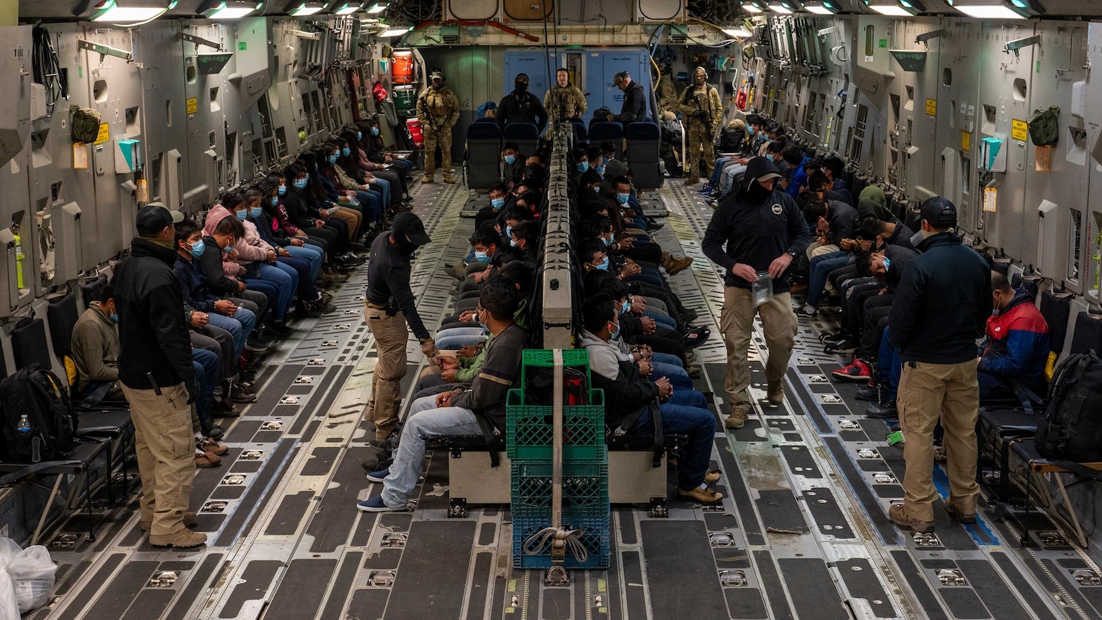 Under the direction of U.S. Northern Command, U.S. Transportation Command is supporting Immigration and Customs Enforcement deportation flights by providing military airlift, Fort Bliss, Texas, Feb. 10, 2025.